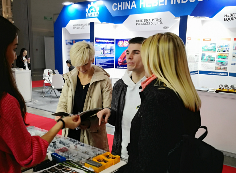 參展商到青龍劍展廳前咨詢產(chǎn)品詳情,本次展會(huì)由莫斯科大學(xué)博士后、中國最美志愿者徐琛全程翻譯。