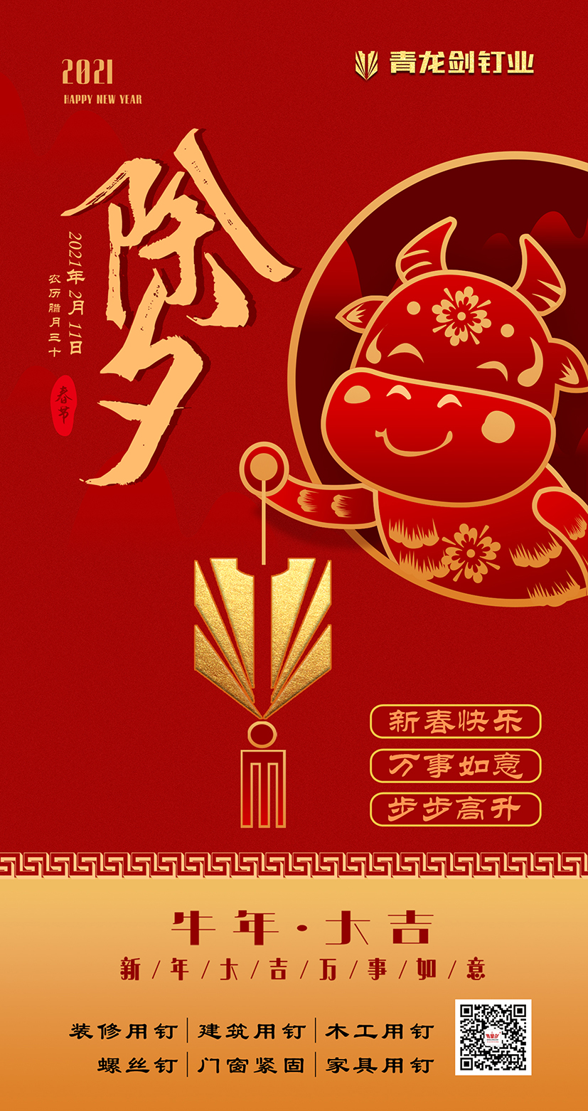 長(zhǎng)河悠遠(yuǎn),天地常新。2021年新春的曙光即將開啟時(shí)間之門,在這辭舊迎新的美好時(shí)刻,我們向關(guān)心和支持青龍劍公司發(fā)展的社會(huì)各界同仁、全國(guó)的經(jīng)銷商、供應(yīng)商和用戶朋友們致以親切的節(jié)日問候和誠(chéng)摯的新春祝福!向奮斗在一線工作崗位、勤勉敬業(yè)的青龍劍員工致敬!