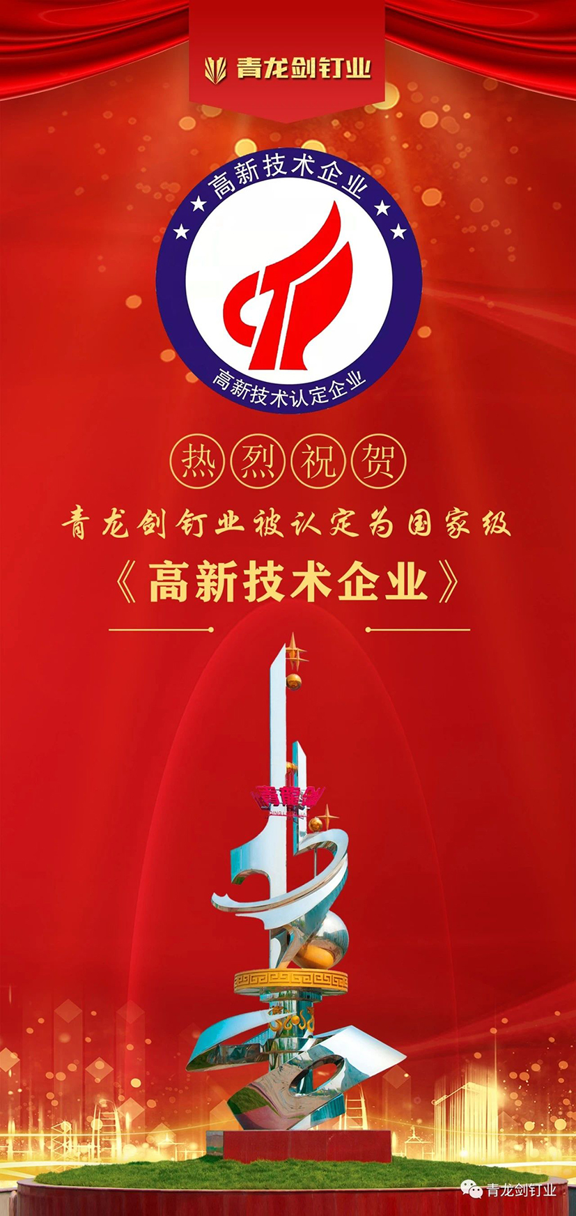 青龍劍釘業被認定為國家級高新技術企業