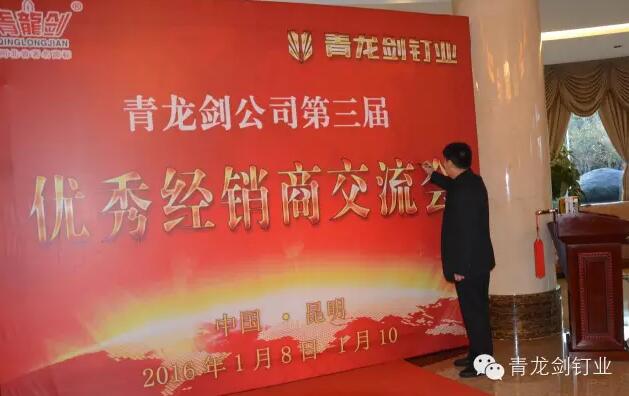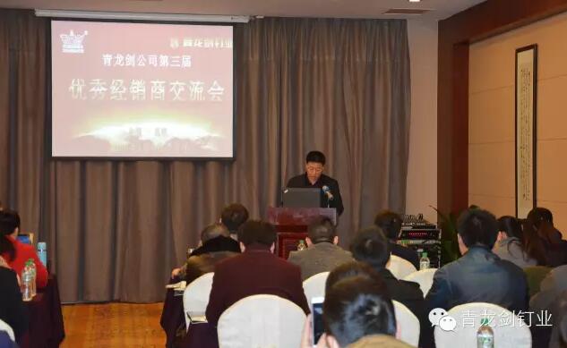 公司董事長馬志華對全國經(jīng)銷商的到來表示誠摯的感謝。——“感謝各位經(jīng)銷商來參加2016年度青龍劍公司第三屆優(yōu)秀經(jīng)銷商交流會,歡聚一堂共同探討青龍劍釘業(yè)發(fā)展大計”。