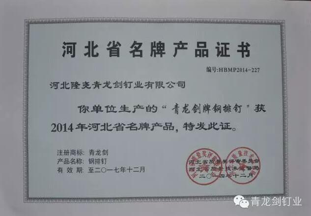 青龍劍釘業作為業內知名的釘類產品供應商,致力于生產優質高效的釘類產品。此次“河北省名牌產品”榮譽的獲得,表明青龍劍產品質量獲得了充分的認可,公司行業知名度和品牌影響力將得到進一步的提升。