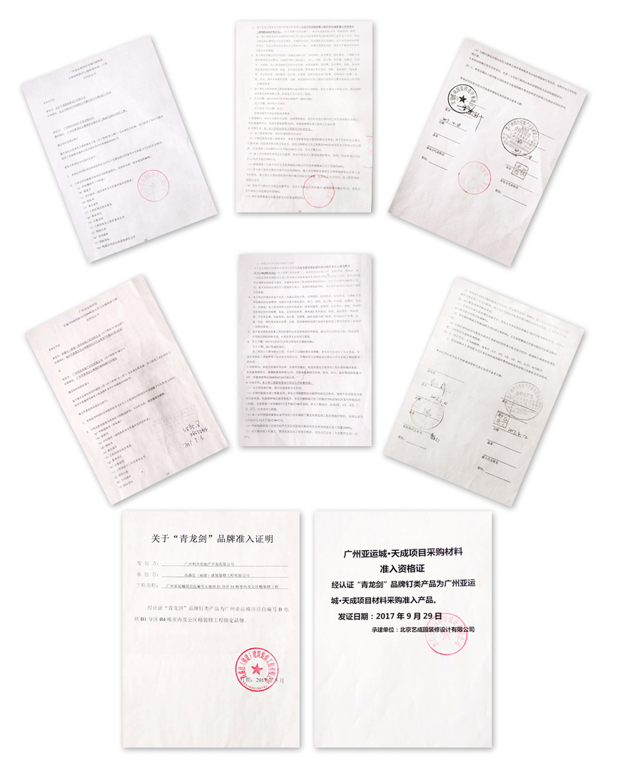 近日,收到廣州利合房地產發來的“青龍劍”品牌釘類產品在廣州亞運城項目成功入選的相關材料,青龍劍被列入工程項目中指定品牌釘類產品。