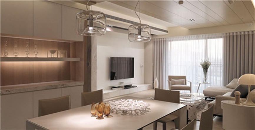 3. 現代裝修中,講究質感的突出,其中白色是風格最常用的色彩,不僅增加室內光亮度,而且有利于室外陽光的撒入。因此很多電視背景墻往往采用最簡單的裝飾手法,通過線條的變化,產生律動感,讓空間看起來更加有趣。